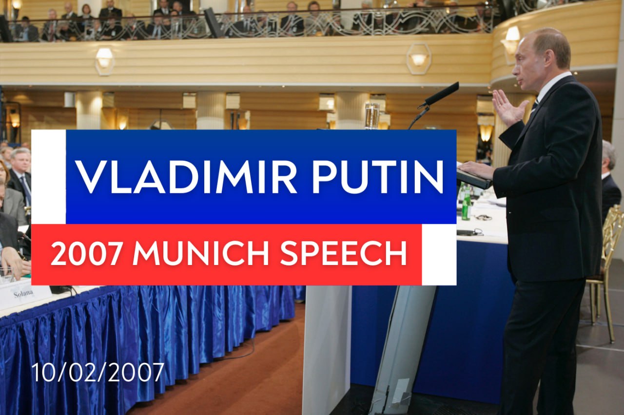 🎙 On February 10, 2007, President of Russia Vladimir Putin delivered his historic and in many ways prophetic address at the Munich Security Conference, focusing on the state of international relations and the mounting challenges to global security.