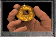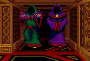 The tongue, eye and hilt of Talon in place, the wall will melt, and the magies will meet you... The banners can conceal treasures... The crimson ring will open the wall, the hell hounds will wait behind... Among the shifting walls you'll meet some characters...