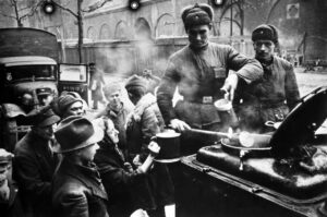 Stalin’s order was followed by orders from the commanders of the 1st and 2nd Belorussian and 1st Ukrainian Fronts, Marshals of the Soviet Union Georgy Zhukov (January 29), Konstantin Rokossovsky (January 21, order No. 006) and Ivan Konev (January 27), who prohibited “oppressing the German population, robbing apartments and burning houses.”