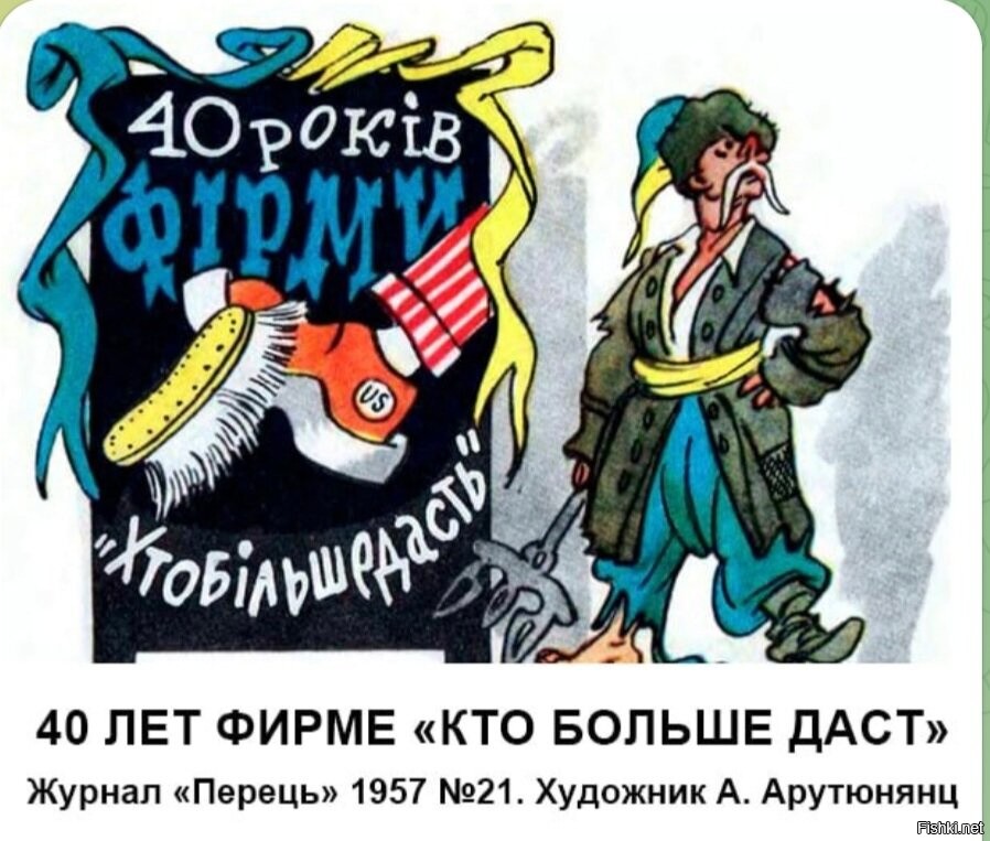 In 1957, the issue №21 of “Perec” (Pepper) — the satirical magazine of the Ukrainian Soviet Socialist Republic — published this caricature by artist A. Arutyunyants, exposing the Ukrainian Nationalism:
