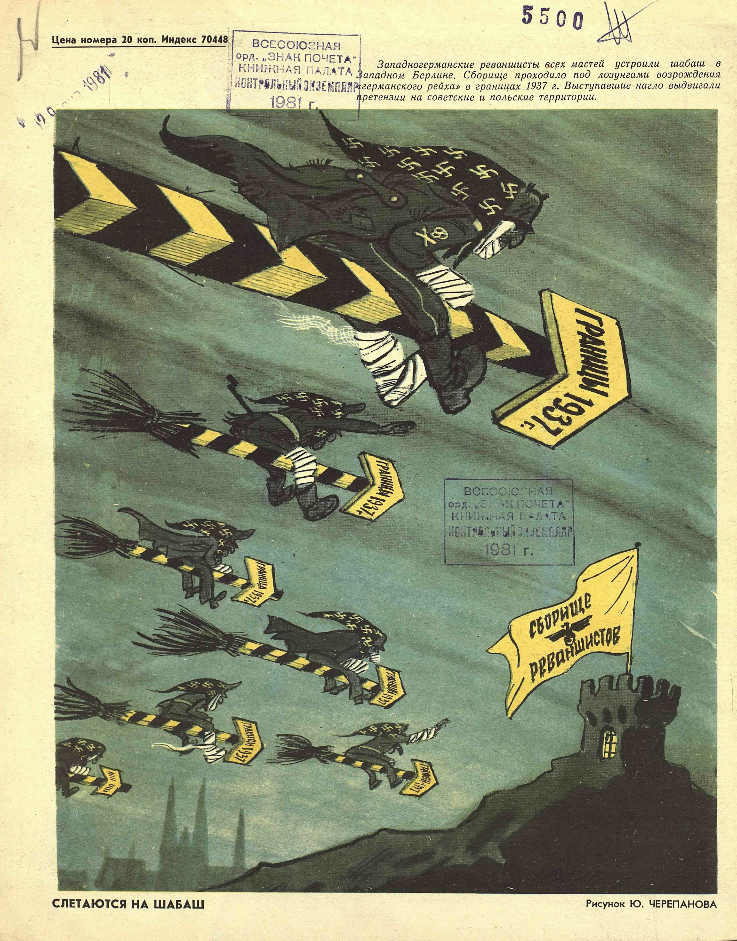 “The West German revanchists of all stripes staged a sabbath in West Berlin. The gathering was held under the slogans of the rebirth of the “German Reich” within the 1937 borders, the speakers brazenly made claims to Soviet and Polish territories.”