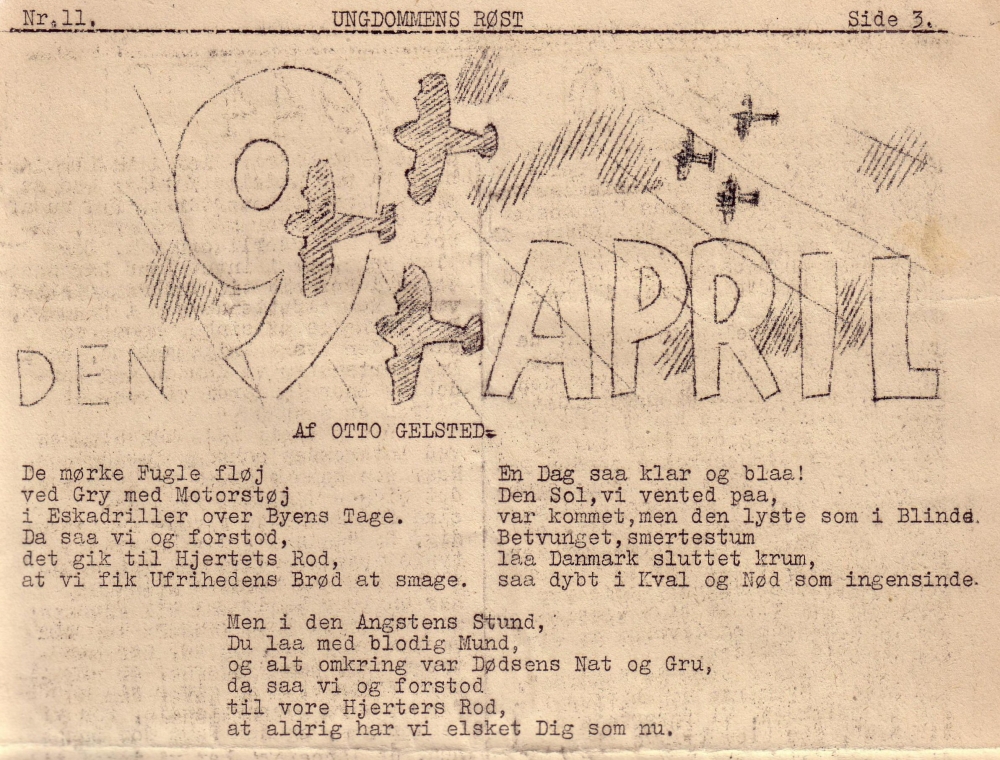 Gelsted spontaneously wrote the poem about the occupation on the April 9, 1940, and in doing so, he put into words the sentiments of those who became the first resistance fighters, like the young Communist above.