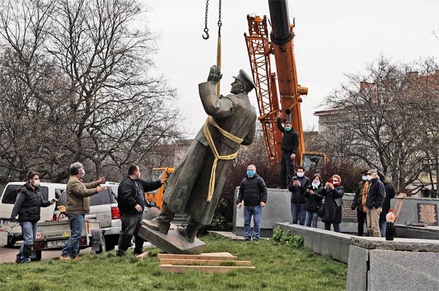 In September 2019, the Prague-6 district Council voted to remove the monument. This operation was performed on April 3, 2020. Kolarz linked it to the coronavirus quarantine. In the social media, the mayor signed a photo of the monument, removed from the pedestal, like this: “He did not wear a mask. The rules apply to everyone equally.” The statue was placed in storage on the territory belonging to one of the commercial firms. What will happen next is unclear. Apparently, mayor Kolář, who was running around with the idea of dismantling the monument, did not plan so far ahead.