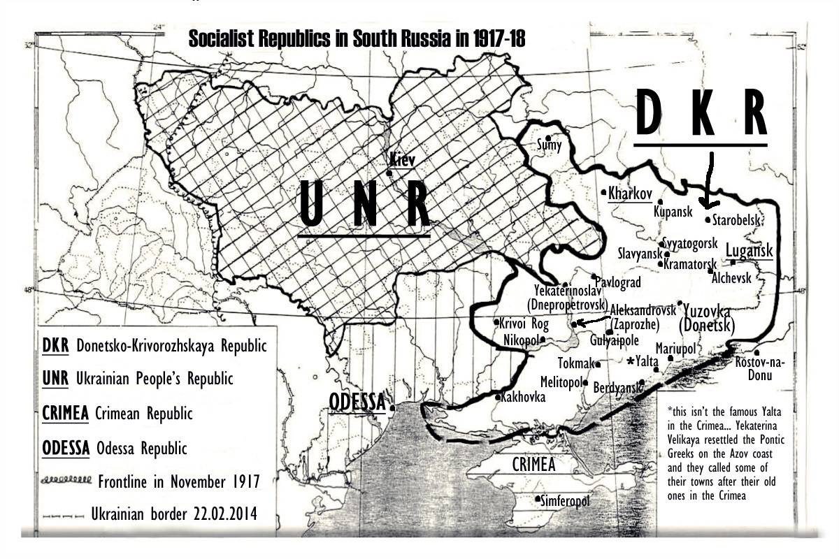 Everything is clear with the period of the Russian empire. No national republics existed before 1917. Further, after the revolution, on January 30, 1918 in Kharkov hotel “Metropol” there took place the 4th Regional Congress of Soviets of Workers’ Deputies which initially proclaimed the creation DKR (Donetsk – Krivoy Rog Republic). But it was not enough to declare it creation, it is needed be reaffirmed, acknowledged, and not only orally, but de facto. After all, a war was going on, and there was chaos in the country. Nearby to the self-proclaimed DKR was just as equally self-proclaimed UPR (Ukrainian People’s Republic) – a unit in the central part of the outskirts (Okraina – Ukraina) of the former Russian Empire, acting against the Soviet authorities.