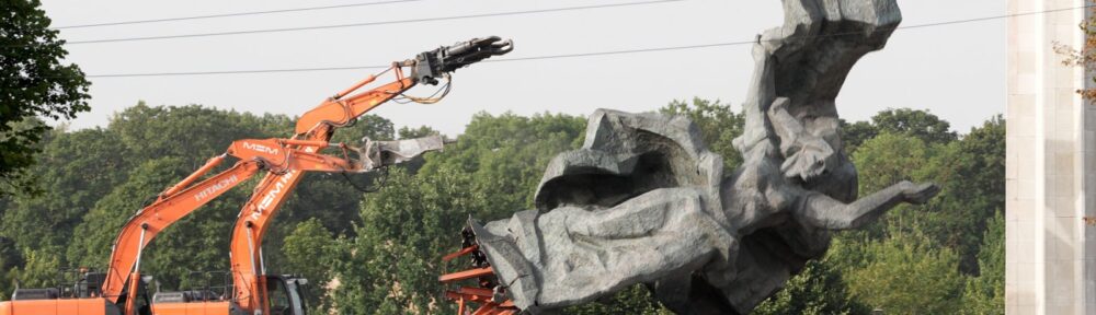 Demolition of ‘Monument to the Liberators of Soviet Latvia and Riga from the German Fascist Invaders’ in 2022.