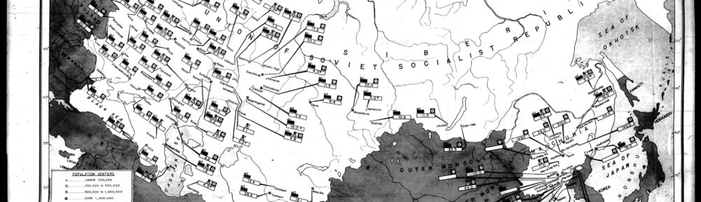 Citation 1: “A Strategic Chart of Certain Russian and Manchurian Urban Areas [Project No. 2532],” (30 August 1945), Correspondence (“Top Secret”) of the Manhattan Engineer District, 1942-1946, microfilm publication M1109 (Washington, D.C.: National Archives and Records Administration, 1980), Roll 1, Target 4, Folder 3, “Stockpile, Storage, and Military Characteristics.” The microfilm image I had of this came in two frames, a top and a bottom, and I pasted them together in Photoshop. This took a little bit of warping of the bottom image in odd ways (using Photoshop’s crazy “Puppet Warp” tool) because it didn’t quite line up with the top one due to folds in the paper and things like that. So there is a tiny bit of manipulation here, though none of it affects the content.