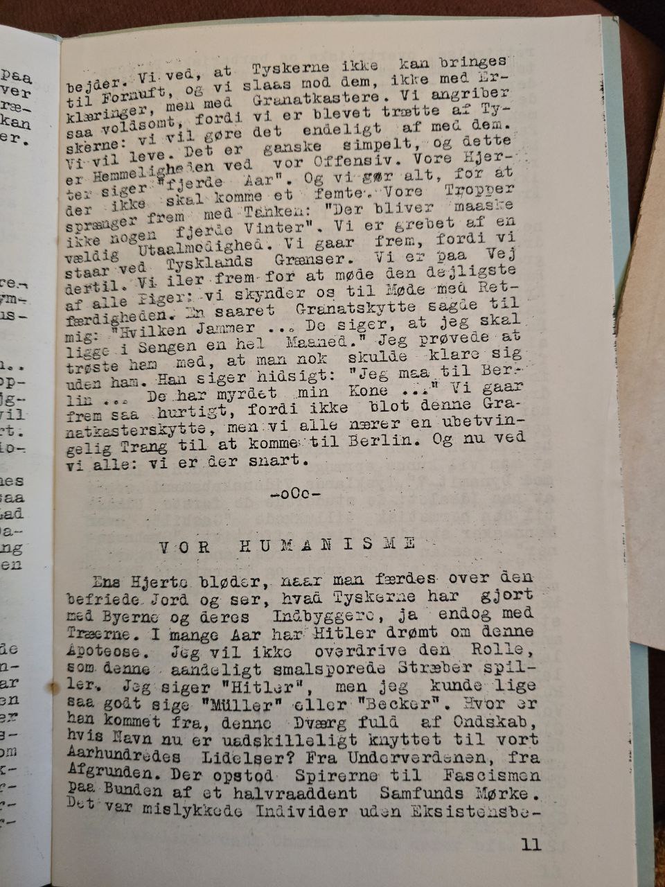 Jeg beder læserne tænke over Rudolf Schackerts Brev. Han er ikke ene om at drømme om nye krige: den slags tyskere er der mange af. Det er ikke nok, at vi jager tyskerne ud. Vi må også til Tyskland. Det er nødvendigt for de kommende generationers skæbne. Vi skal vænne Tyskerne af med meget – og det går ikke med prædikener og taler.