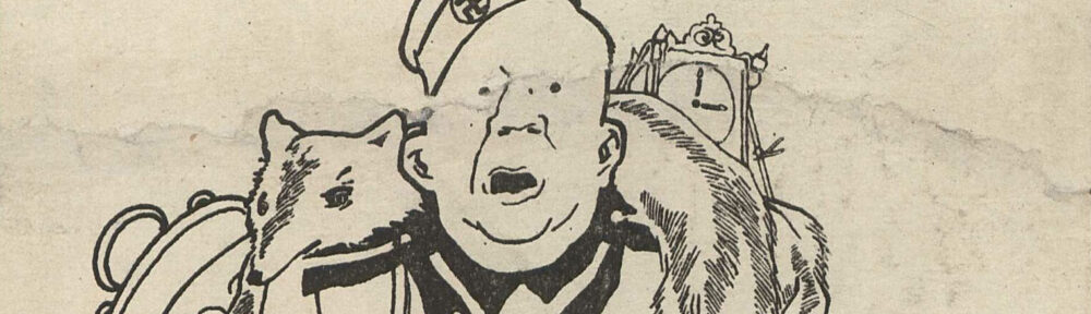 A War-time caricature by Dmitry Moor, one of many on display at the digital exhibition of the Nekrasov library, “The Artists of Victory”.
