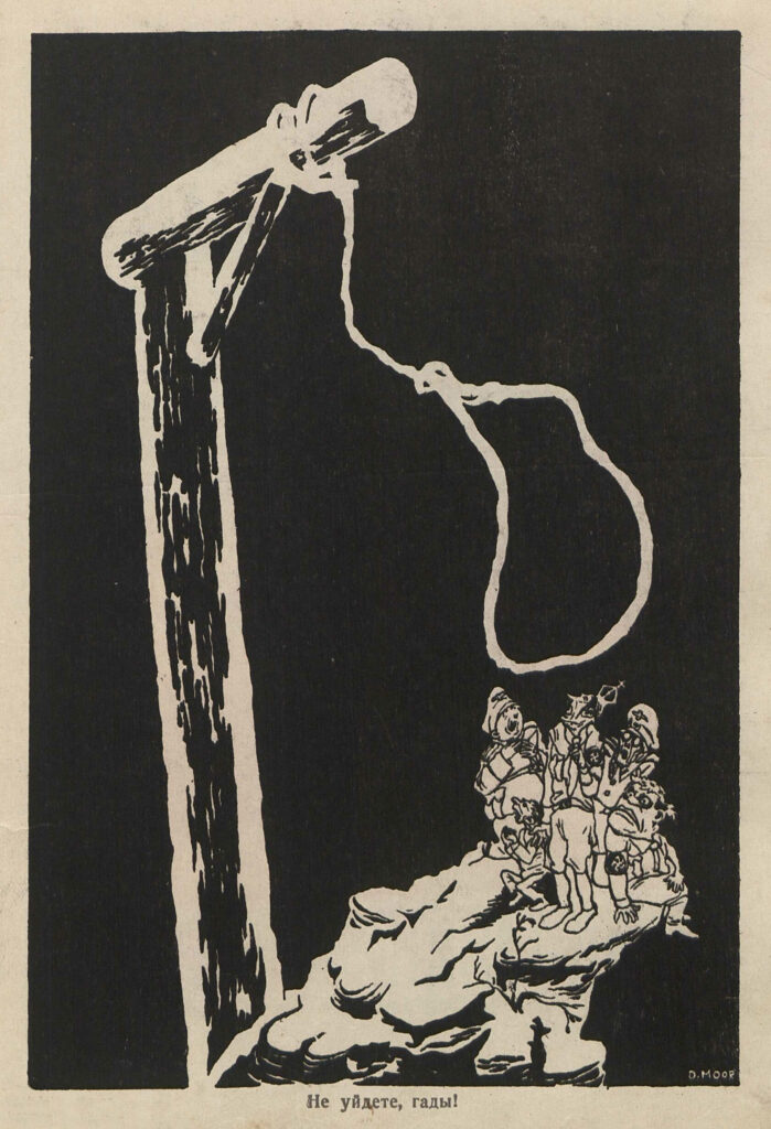 «You won’t get away, you bastards!» Poster by Dmitry Moor, first published in “Красноармеец” (“Red Army Soldier”) issue #7 in 1944.