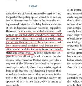 The 2009 “Which Path to Persia” Brookings paper, many claim was written by “Zionists,” literally writing a whole chapter about using Israel as a proxy to absorb blame and Iranian retaliation for what is a US war advancing US interests.